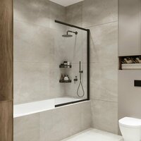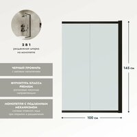 Купить Шторка на ванну MEBELVANN 145×100 см раздвижная, черный профиль, прозрачное стекло с доставкой по всей России.