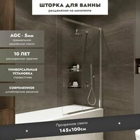 Шторка на ванну MEBELVANN 145×100 см раздвижная, профиль хром, прозрачное стекло: сравнение цен, характеристики, фото, актуальное наличие и цены.