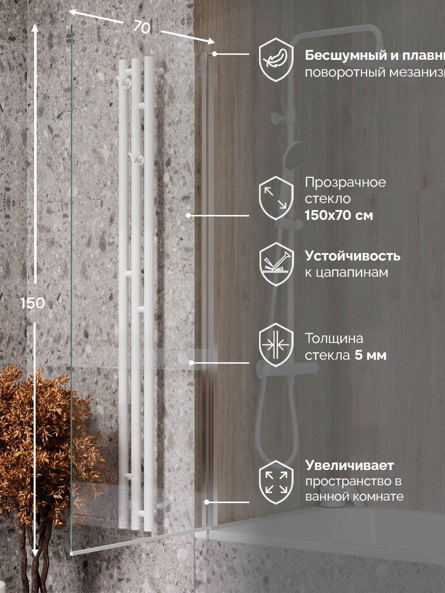 Ширма на борт ванны Reflexion RX15070CCR-24 150х70см | распашная | 5мм | стекло — прозр. | проф — хром: сравнение цен, характеристики, фото, актуальное наличие и цены.
