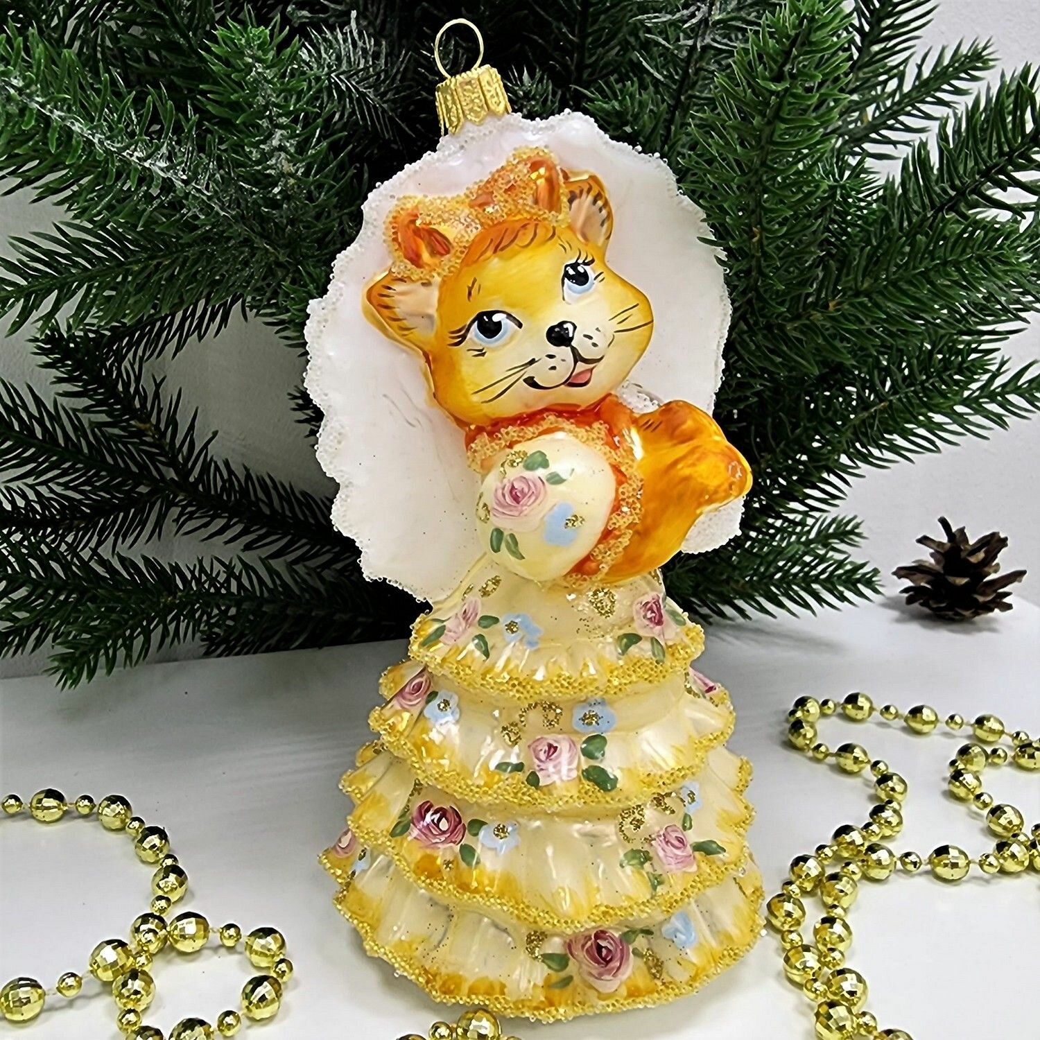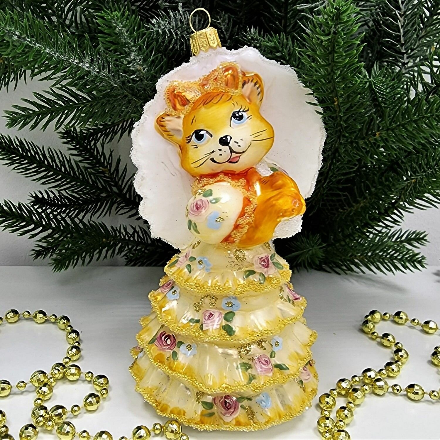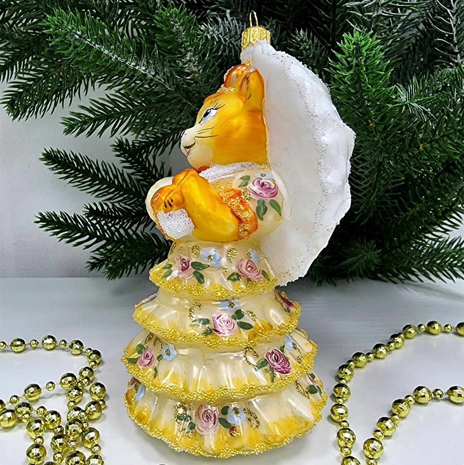 Стеклянная ёлочная игрушка "Кошка с зонтиком версаль" от Irena Co - это уникальное и оригинальное украшение для вашей новогодней елки. Эта игрушка станет ярким акцентом и привлечет внимание каждого гостя на вашем празднике.