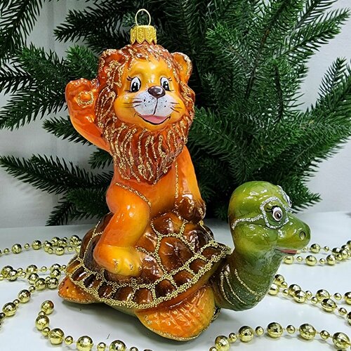 Стеклянная ёлочная игрушка Irena-Co Лев с черепахой: изысканное украшение для вашей новогодней ёлки