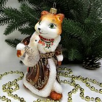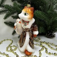 В комплекте идет одна стеклянная ёлочная игрушка "Лиса с гусем".