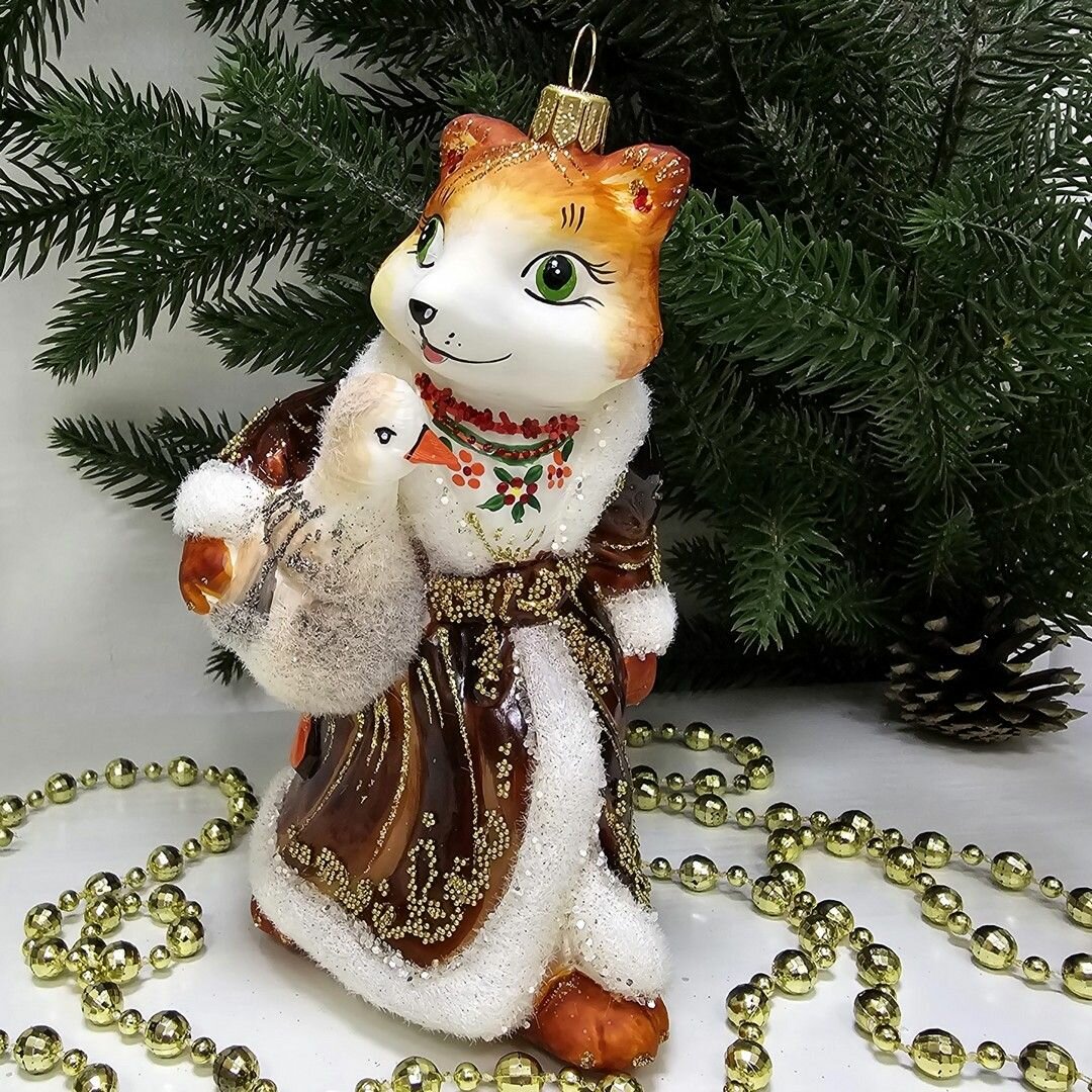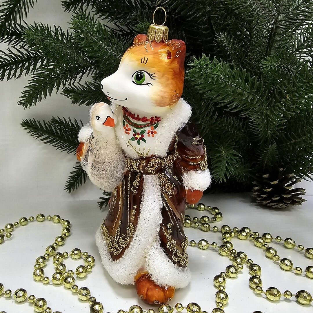 Стеклянная ёлочная игрушка Irena-Co "Лиса с гусем" - это уникальное украшение, которое станет прекрасным дополнением к праздничной атмосфере.