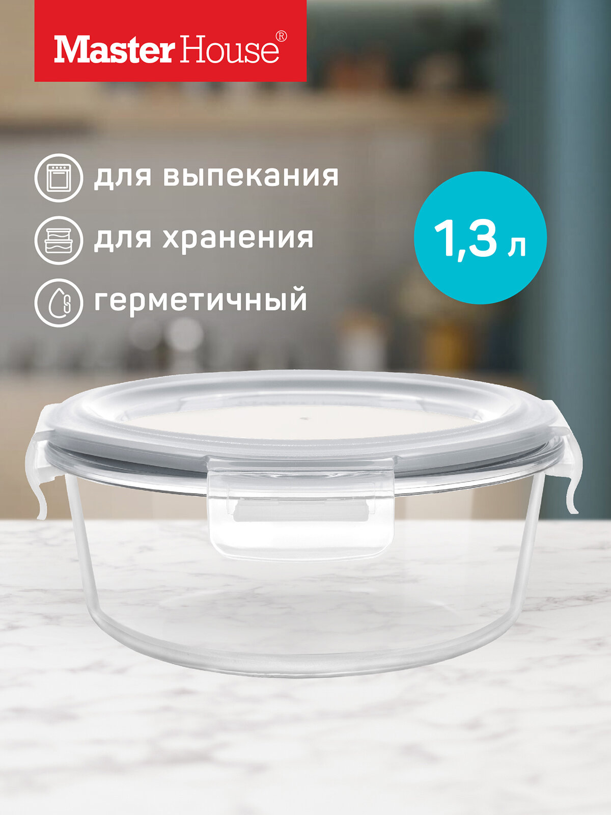Купить Стеклянный контейнер с крышкой для еды Master House Кратос, 1,3л, для СВЧ-печи, герметичный с доставкой по всей России. Стеклянный контейнер с крышкой для еды Master House Кратос, 1,3л, для СВЧ-печи, герметичный: сравнение цен, характеристики, фото, актуальное наличие и цены.