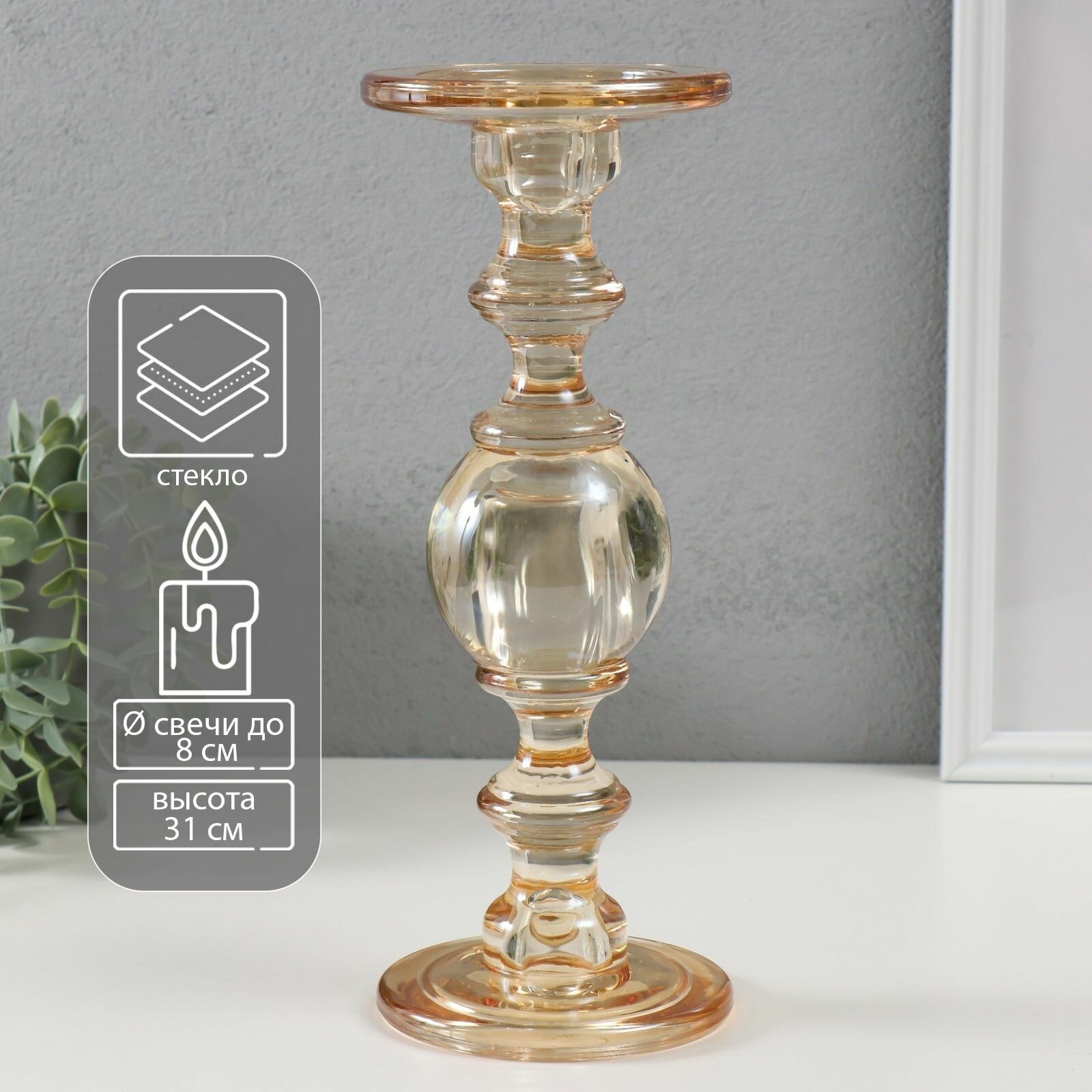 Купить Стеклянный подсвечник на 1 свечу двусторонний Классический с шаром , золотистый, 11 11 29.5 см с доставкой по всей России.