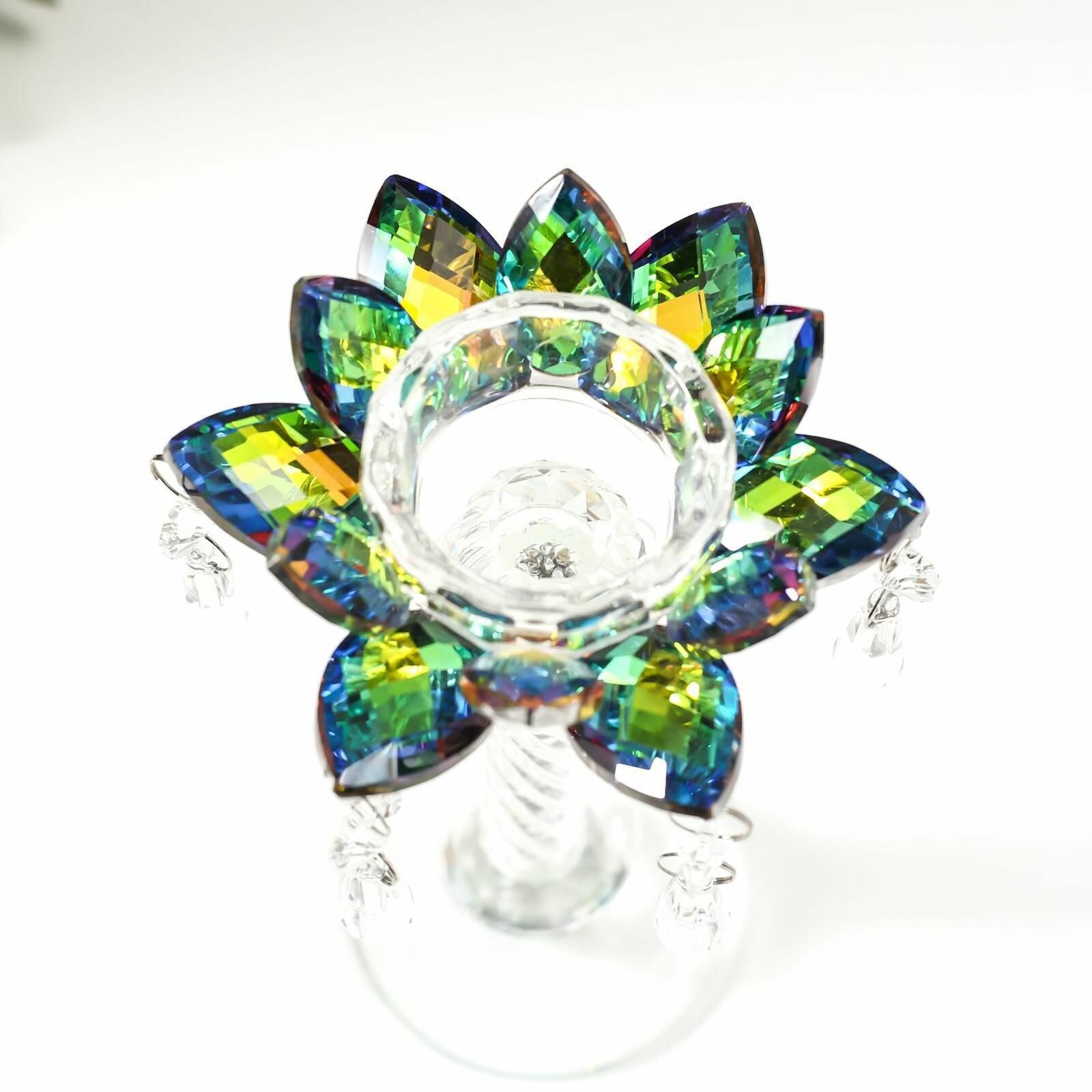 Стеклянный подсвечник на 1 свечу Лотос на пьедестале , зелень голография, 22.3 10.5 10.5 см: сравнение цен, характеристики, фото, актуальное наличие и цены.