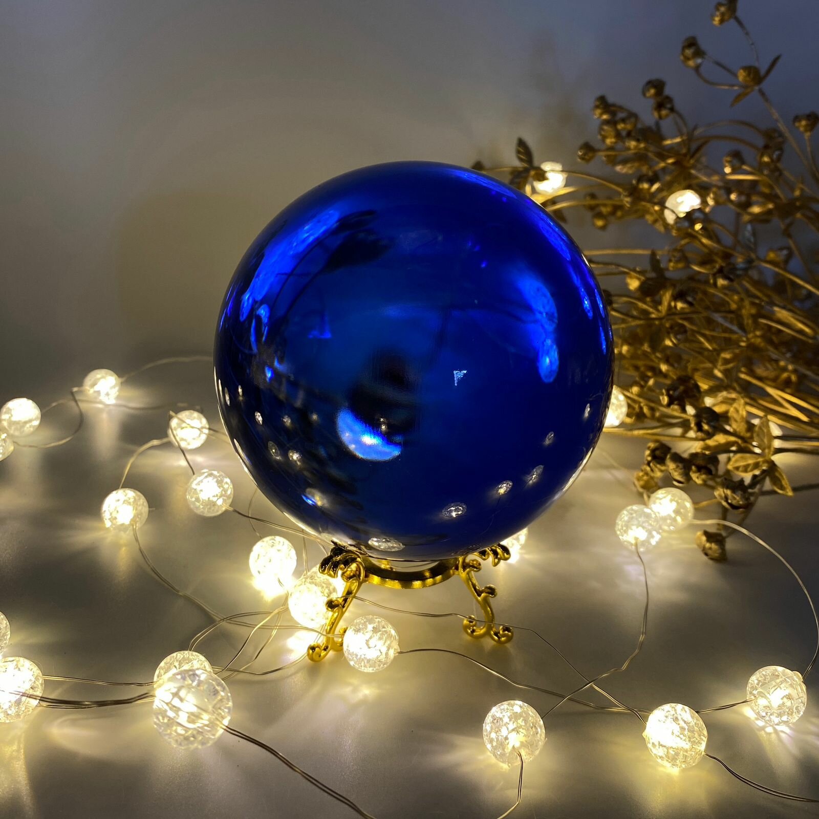 Шар-перевертыш декоративный синее стекло 10 см диаметр. Подставка под шар идет в комплекте .