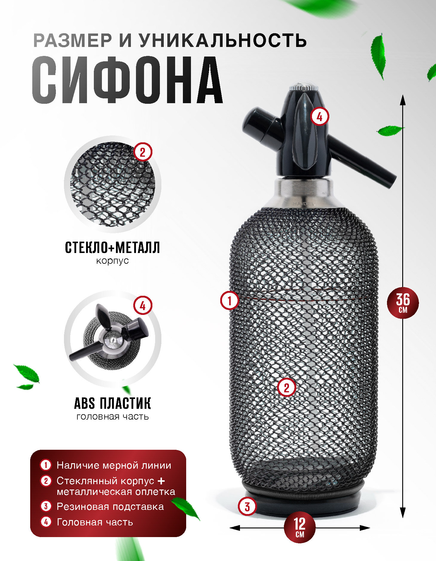Сифон работает от современных стандартных баллончиков 8-8.6 грамм с углекислым газом CO2 (подходят все современные баллоны любых брендов и производителей)