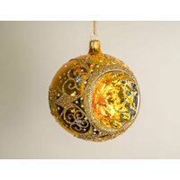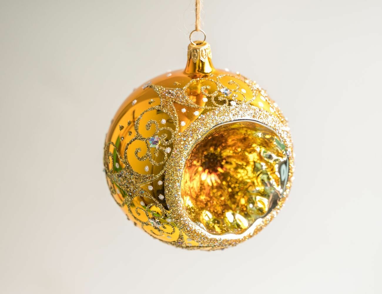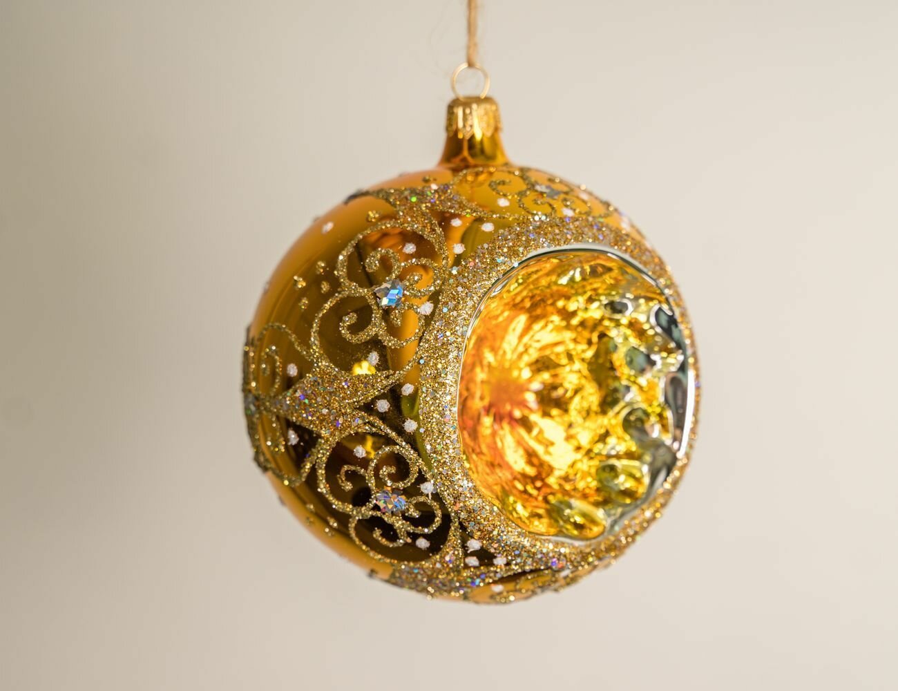 Стеклянный ёлочный шар, узорчатый, золотой, 115 мм, Елочка