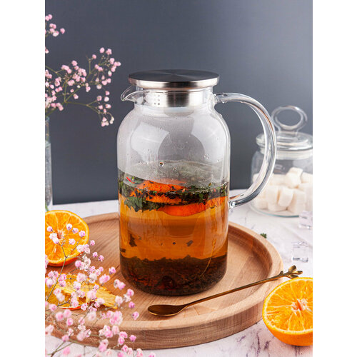 Термостойкий боросиликатный корпус кувшина способен выдерживать температуру от -20С до +150С, что позволяет использовать его для приготовления и подачи горячих напитков, таких как глинтвейн или заваривания чая.