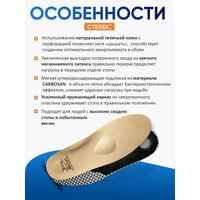 | Дополнительная информация | верхний слой - натуральная кожа, средний слой – SPIDER, пяточный амортизатор – CARBOSANE, каркас - литой пластик |