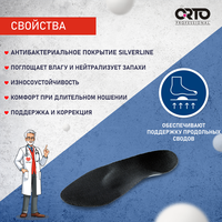 Стельки ORTO PROFESSIONAL COMPLEX TECH предназначены для лечения преимущественно нефиксированных форм продольного и поперечного плоскостопия, а также профилактики травм и заболеваний опорно-двигательной системы. Обеспечивают расширение двигательного режима и повышение качества жизни за счёт комплексного воздействия, оказываемого материалом Memopur® и покрытием Silverline.