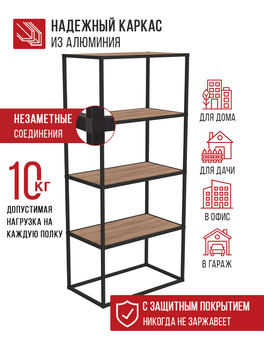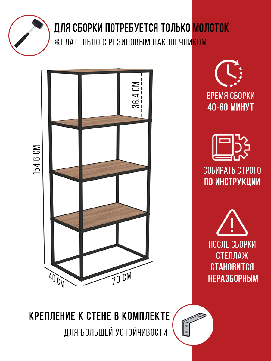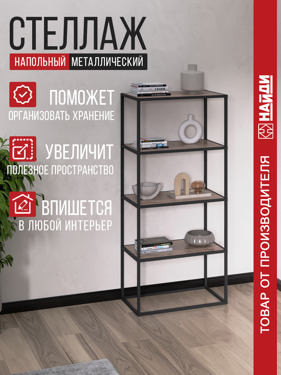 Стеллаж 104 металлический с ЛДСП напольный 700х1546х400 мм. Черный муар, Дуб табачный.: сравнение цен, характеристики, фото, актуальное наличие и цены.