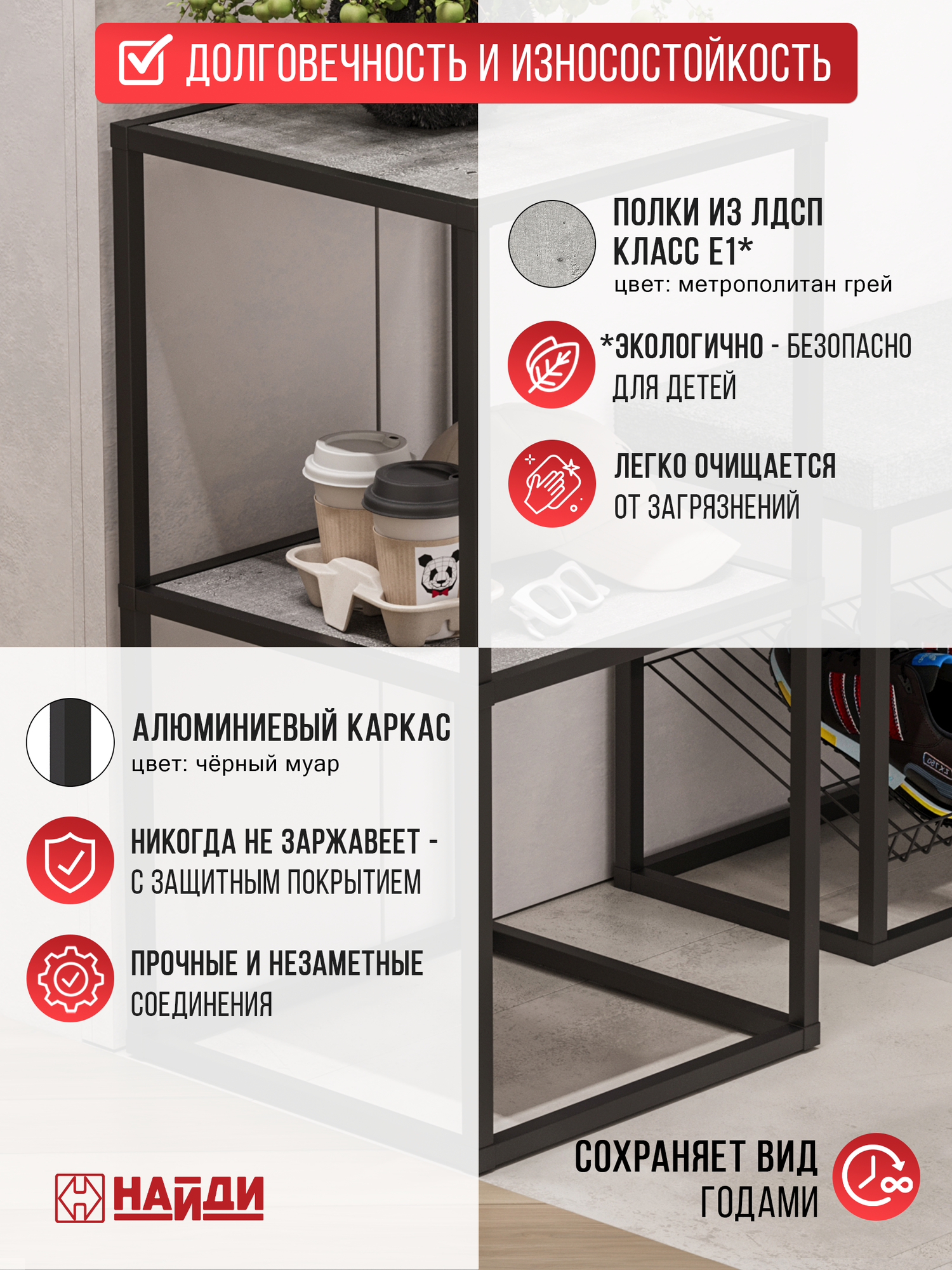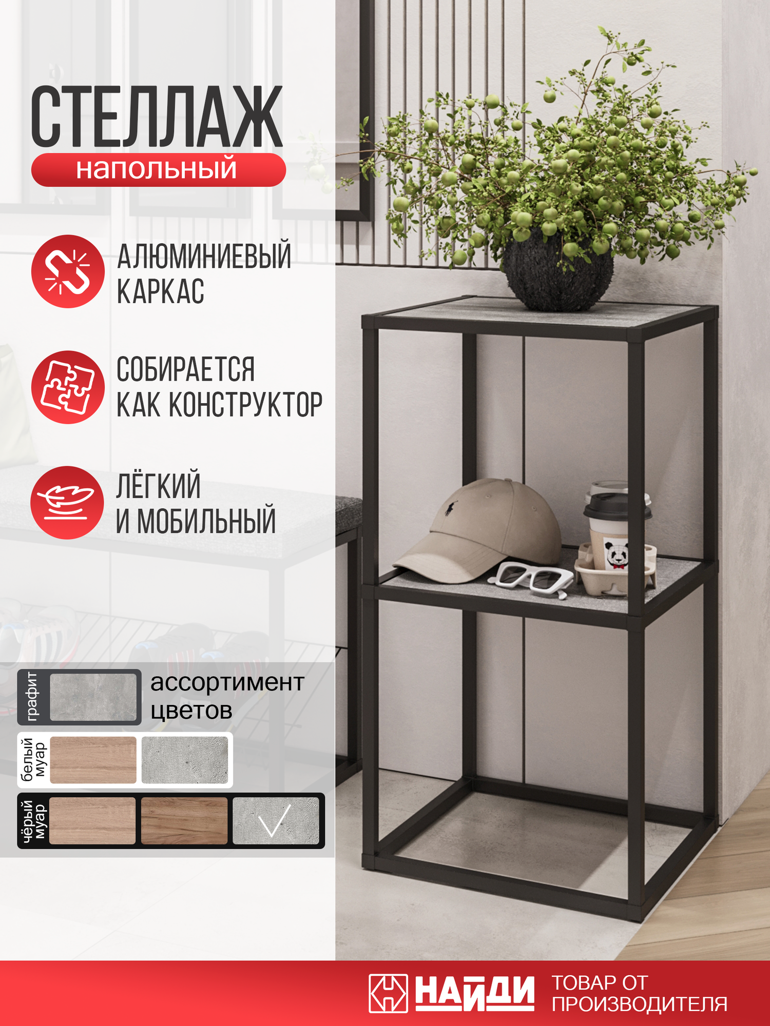Стеллаж 2 НАЙДИ, 400*400*782, Черный муар, ЛДСП Метрополитан Грей: сравнение цен, характеристики, фото, актуальное наличие и цены.