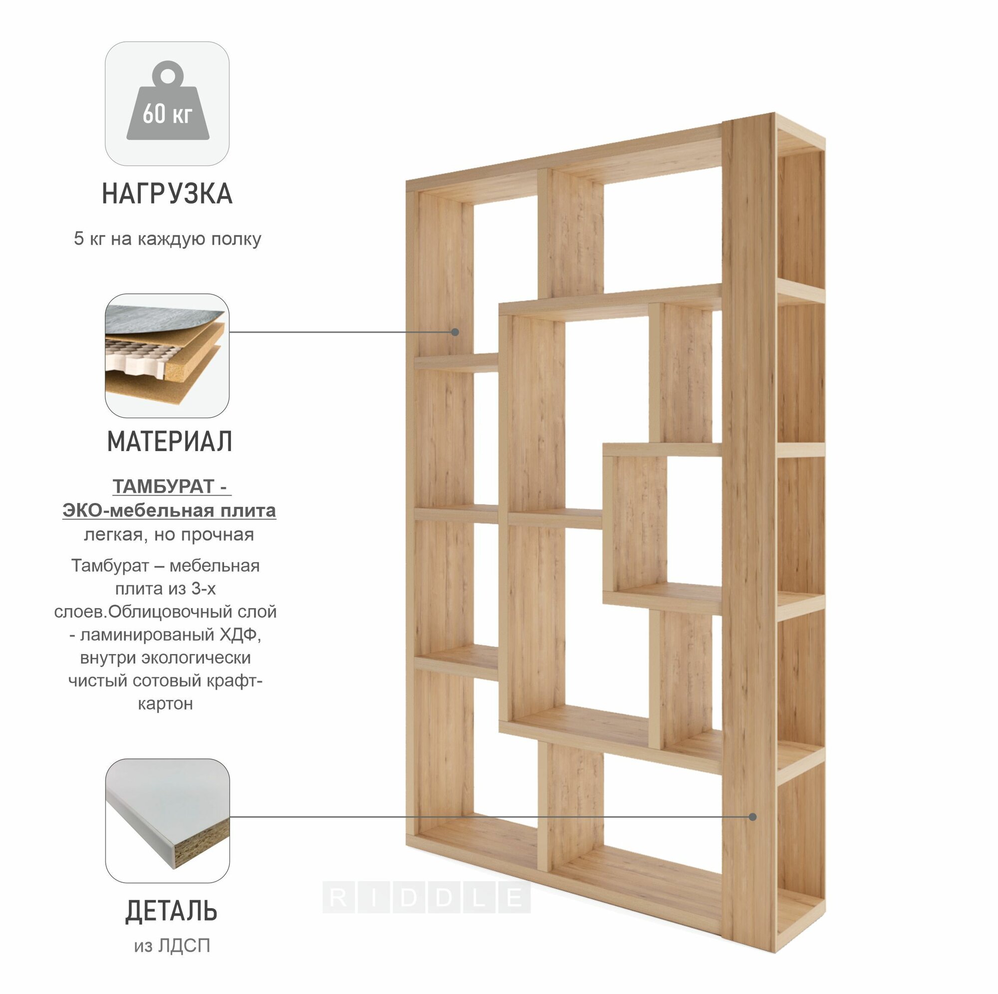 Стеллаж 2100x1300x312 RIDDLE TWIST, напольный деревянный для книг и игрушек, зонирующая перегородка, этажерка: сравнение цен, характеристики, фото, актуальное наличие и цены.