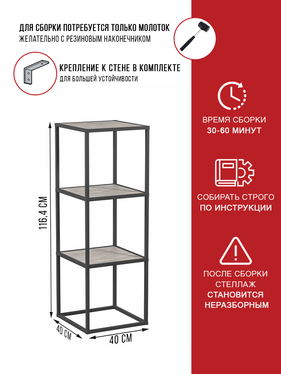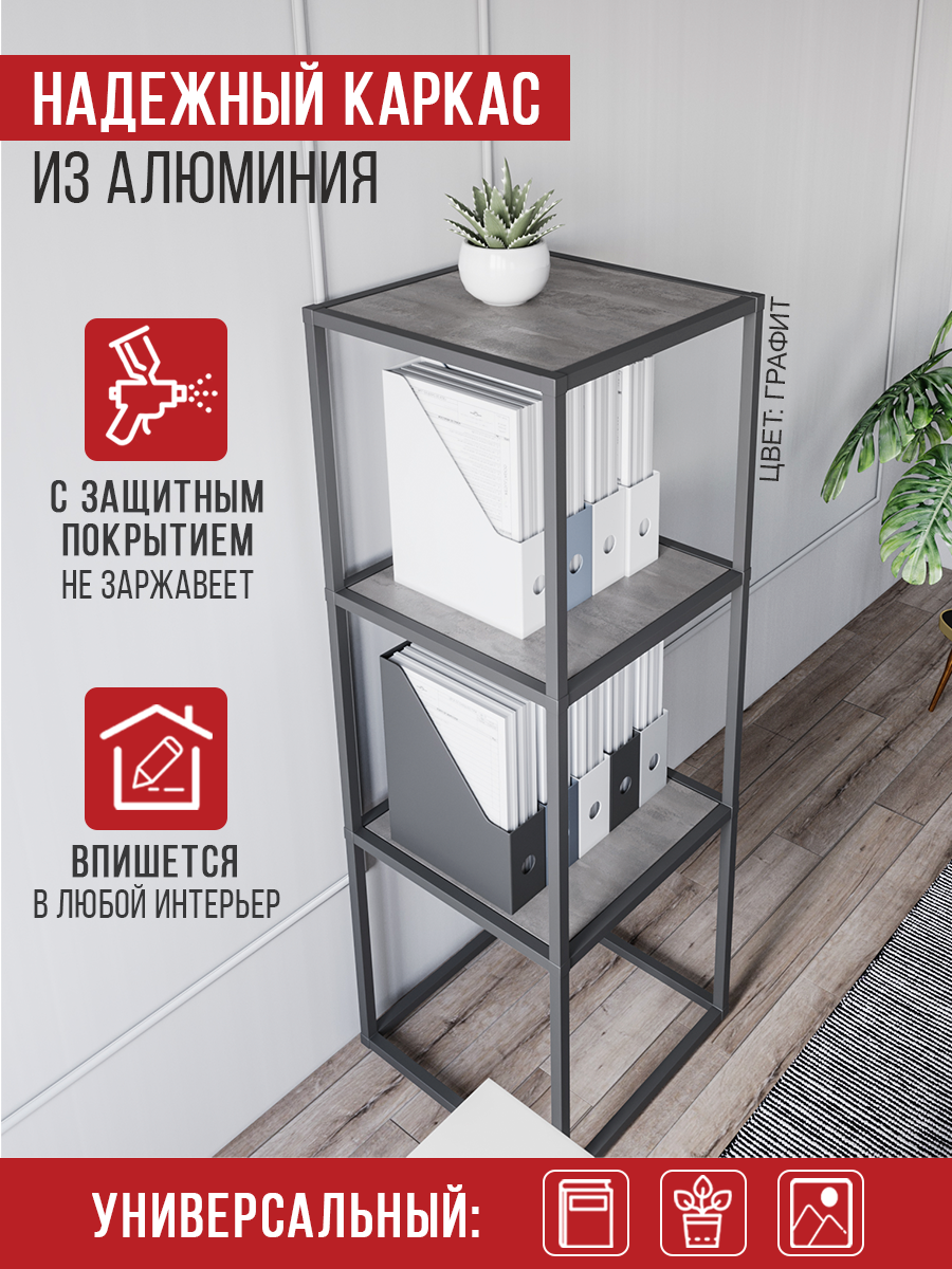 Стеллаж 3 полки металлический с ЛДСП 40*40*116 cм. Графит. Бетонный камень,: сравнение цен, характеристики, фото, актуальное наличие и цены.