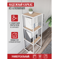 Стеллаж 3 полки металлический с ЛДСП 40*40*116 см. Белый муар. Дуб Сонома