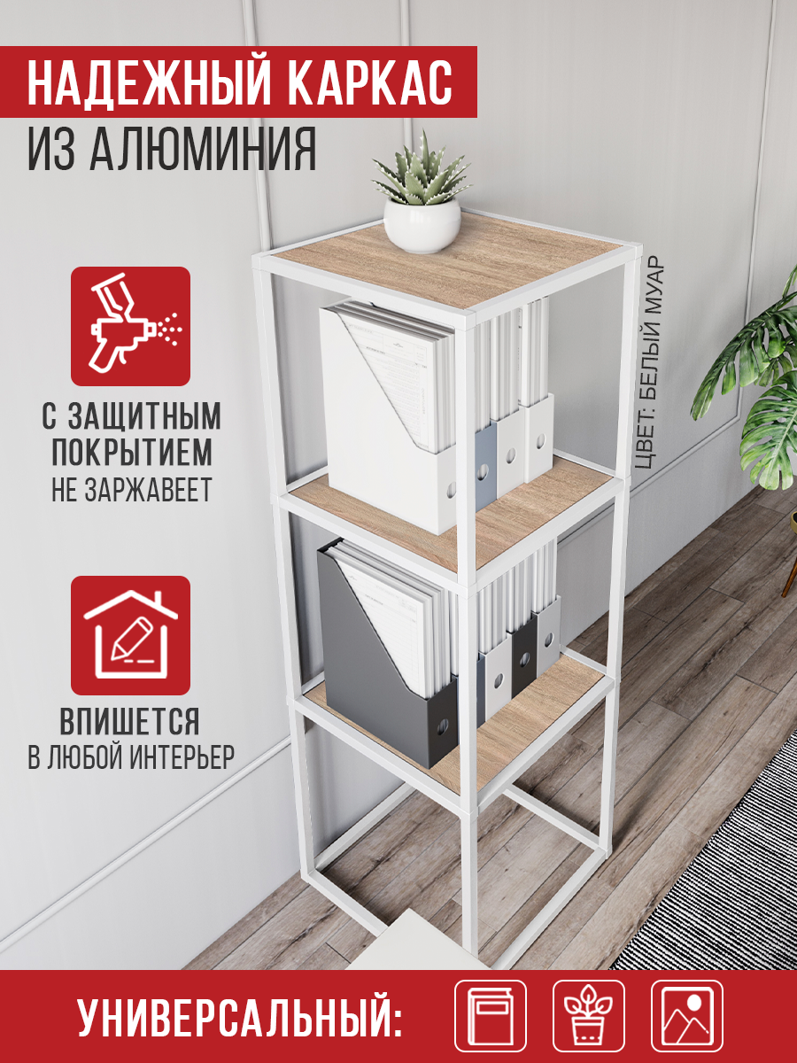 Купить Стеллаж 3 полки металлический с ЛДСП 40*40*116 см. Белый муар. Дуб Сонома с доставкой по всей России. Стеллаж 3 полки металлический с ЛДСП 40*40*116 см. Белый муар. Дуб Сонома: сравнение цен, характеристики, фото, актуальное наличие и цены.