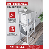Купить Стеллаж 3 полки металлический с ЛДСП, 40*40*116 см Белый муар. Метрополитен Грей с доставкой по всей России.