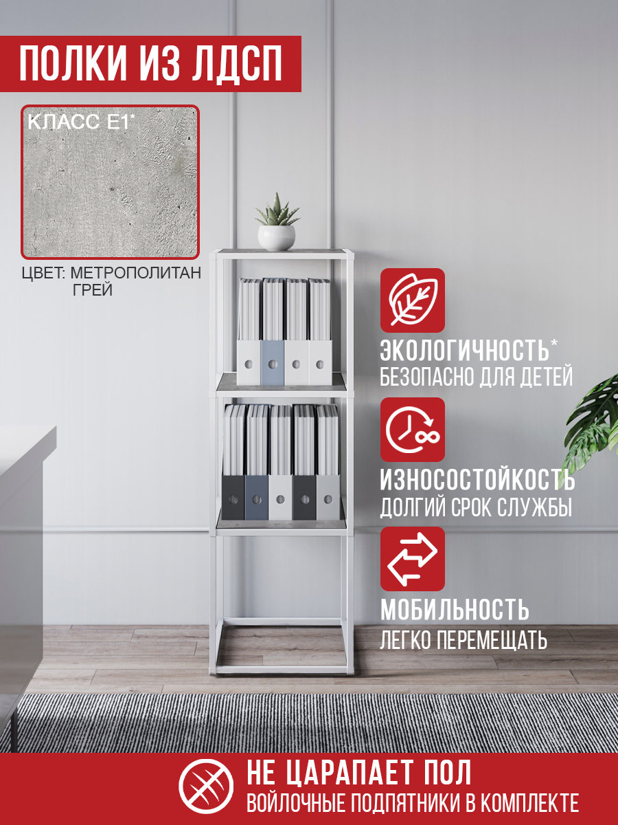 Стеллаж 3 полки металлический с ЛДСП, 40*40*116 см Белый муар. Метрополитен Грей: сравнение цен, характеристики, фото, актуальное наличие и цены.