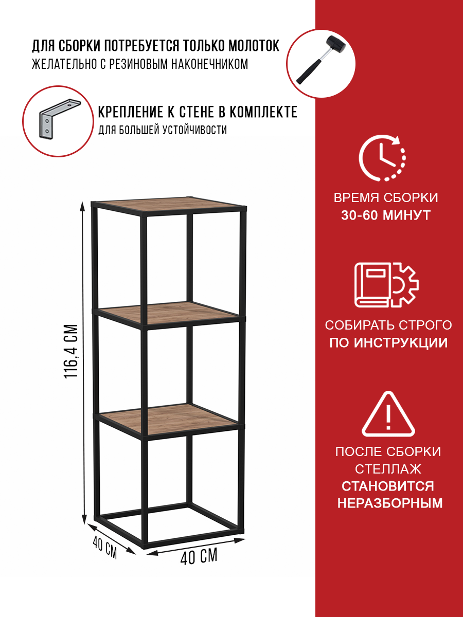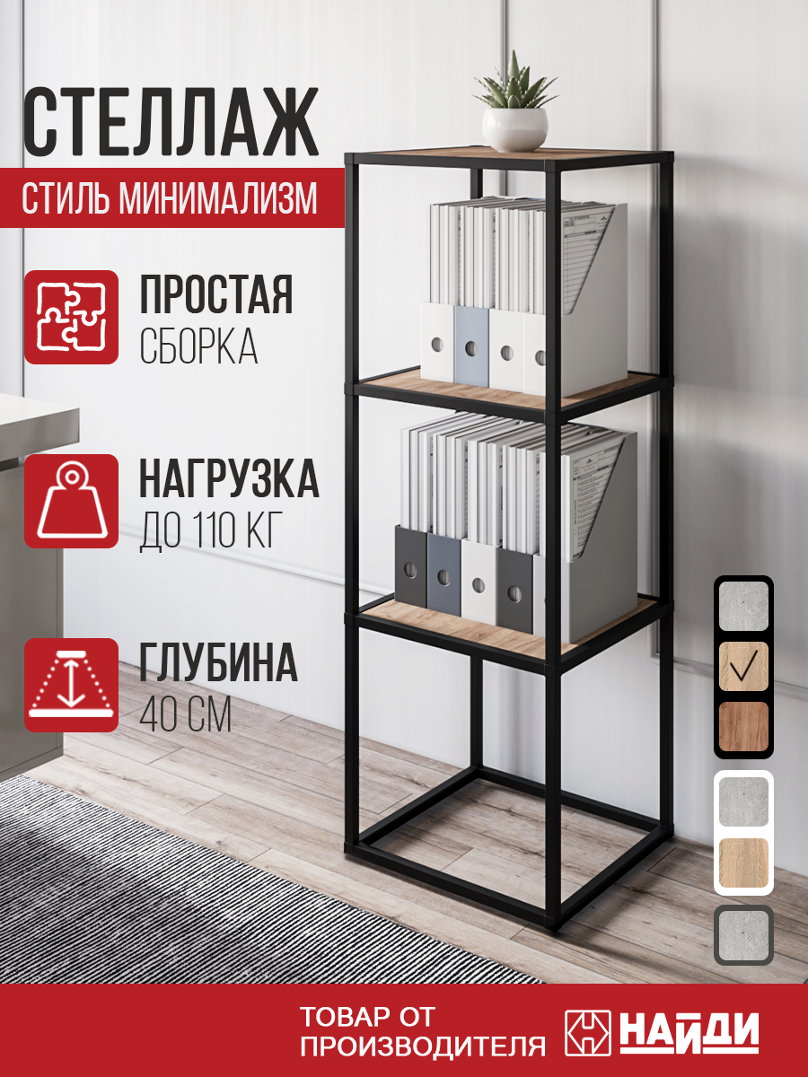 Стеллаж 3 полки металлический с ЛДСП, 40*40*116 см. Черный муар. Дуб крафт Табачный: сравнение цен, характеристики, фото, актуальное наличие и цены.