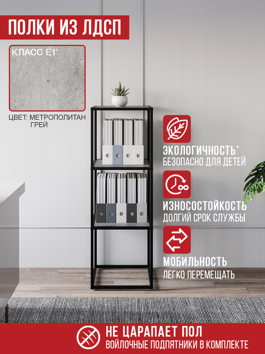 Стеллаж 3 полки металлический с ЛДСП, 40*40*116 см. Черный муар. Метрополитен Грей: сравнение цен, характеристики, фото, актуальное наличие и цены.