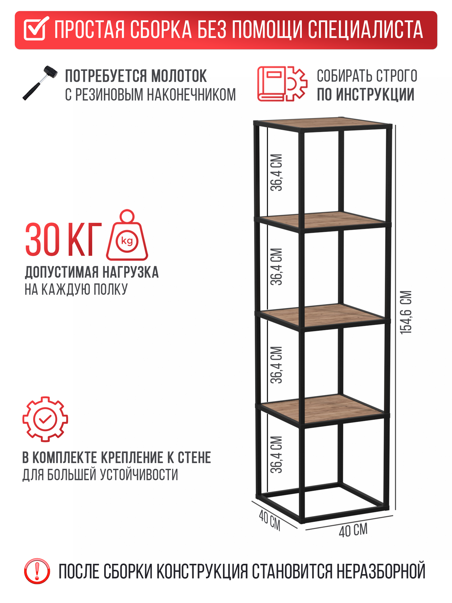 Сборка должна проходить строго по шагам инструкции. Перед вбиванием примерьте детали, и только убедившись в правильной сборке можно вбивать до упора. По коннекторам нужно бить строго по основанию, не по лепесткам, для их вбивания используйте резиновую киянку или молоток + деревянный брусок. Для лучшего вхождения соединительных уголков смажьте любой смазкой или маслом. Будем рады хорошему отзыву.