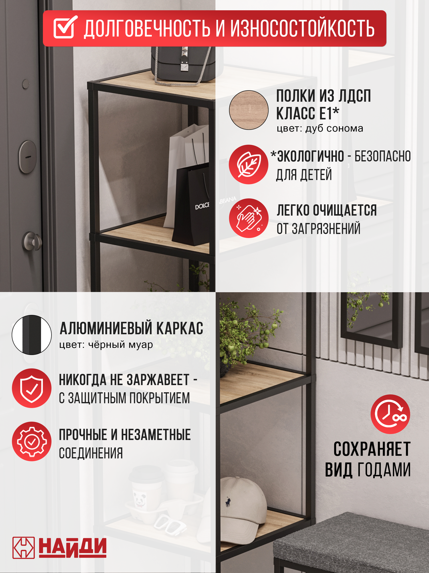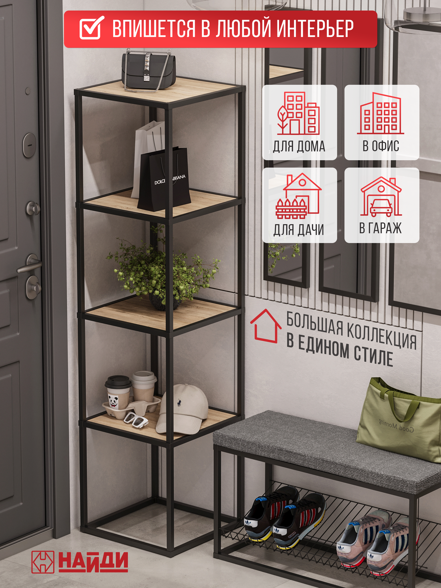 Стеллаж 4 полки, 400*400*1546мм, Черный муар, ЛДСП Дуб Сонома: сравнение цен, характеристики, фото, актуальное наличие и цены.