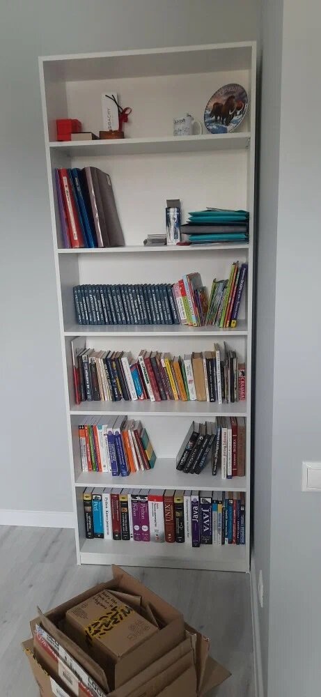 Высота стеллажа составляет 215 см, что позволяет разместить на нем предметы различных размеров.