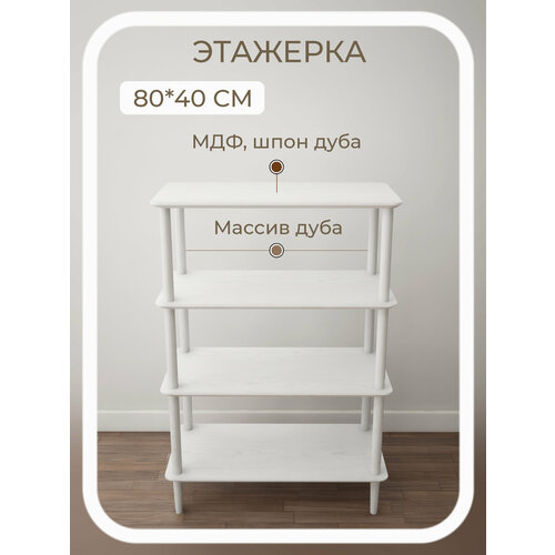 Стеллаж 80*40*118 прямоугольный 4 полки белый деревянный напольный из массива и шпона дуба STROGANINI для книг и игрушек: сравнение цен, характеристики, фото, актуальное наличие и цены.