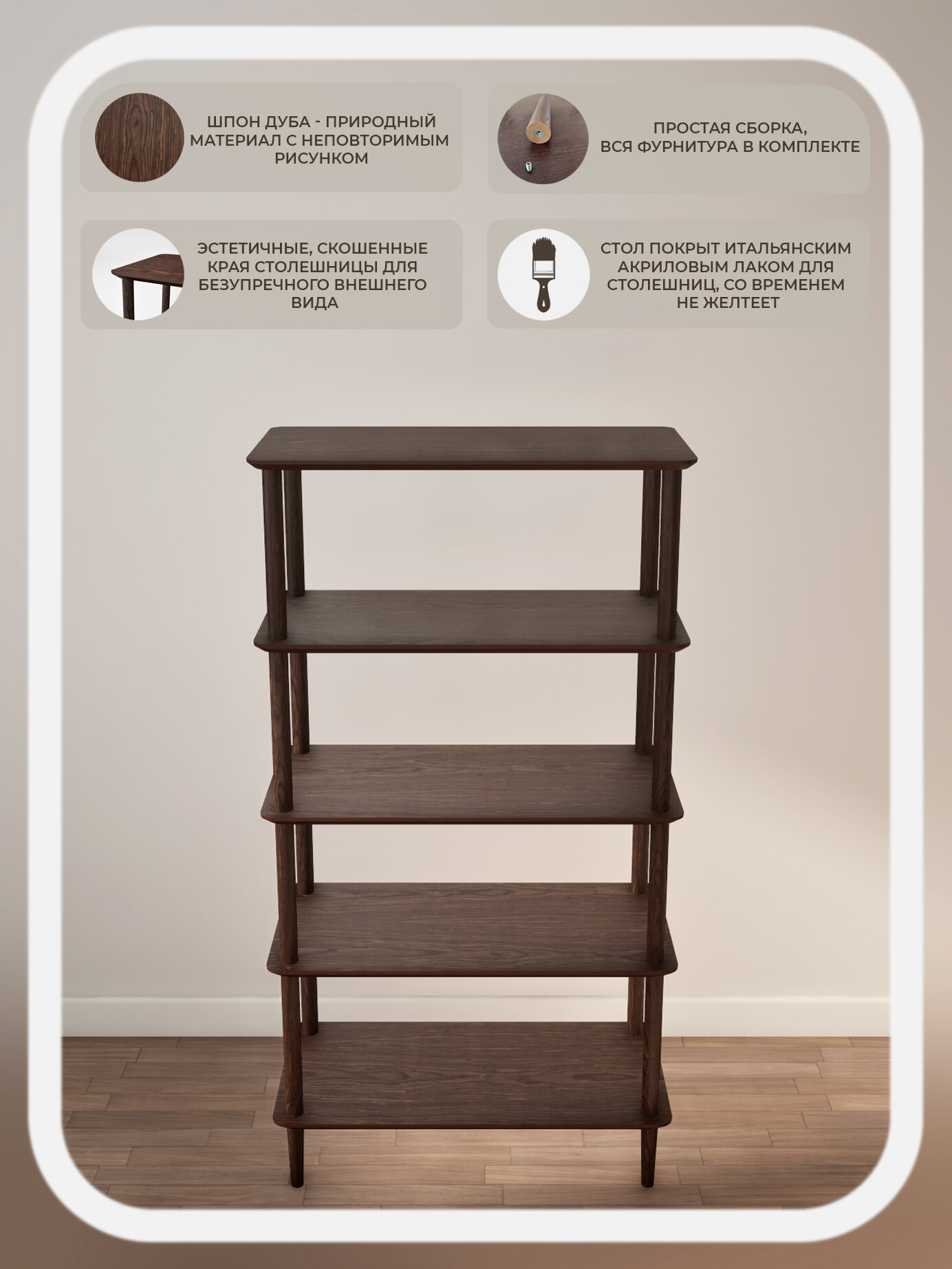 Стеллаж 80*40*152 прямоугольный 5 полок коричневый деревянный напольный из массива и шпона дуба STROGANINI для книг и игрушек: сравнение цен, характеристики, фото, актуальное наличие и цены.