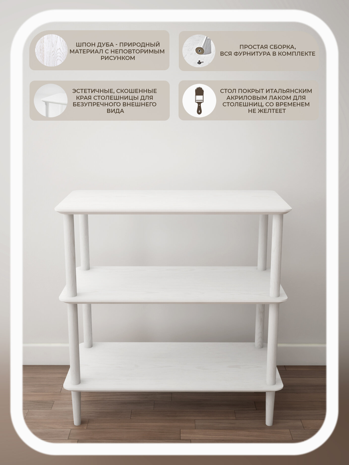 Стеллаж 80*40*84 прямоугольный 3 полки белый деревянный напольный из массива и шпона дуба STROGANINI для книг и игрушек: сравнение цен, характеристики, фото, актуальное наличие и цены.