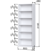 Стеллаж-800 оснащен шестью полками, что позволяет разместить на нем различные предметы и аксессуары. Глубина стеллажа составляет 28 см, а его высота и ширина – 215 см и 80 см соответственно.