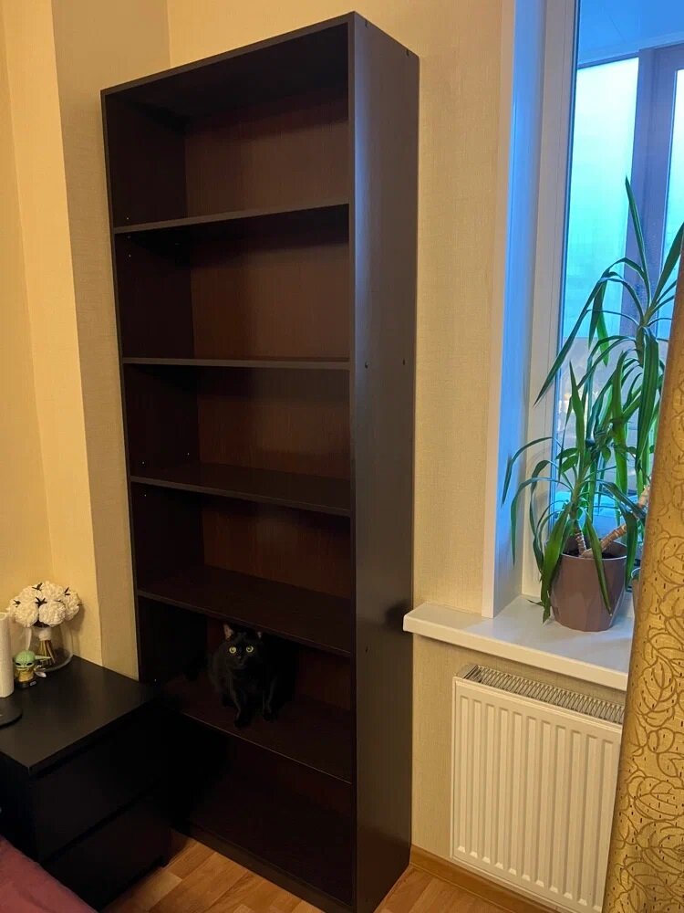 Стеллаж выполнен в стильном цвете венге, который гармонично впишется в любой современный интерьер.