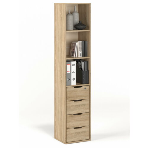 Купить Стеллаж БАНГА-35, дуб сонома, с ящиками и открытой полкой, (ВхШхГ) 177,2х36,8х32,6 см, ЛДСП с доставкой по всей России. Стеллаж БАНГА-35, дуб сонома, с ящиками и открытой полкой, (ВхШхГ) 177,2х36,8х32,6 см, ЛДСП: сравнение цен, характеристики, фото, актуальное наличие и цены.