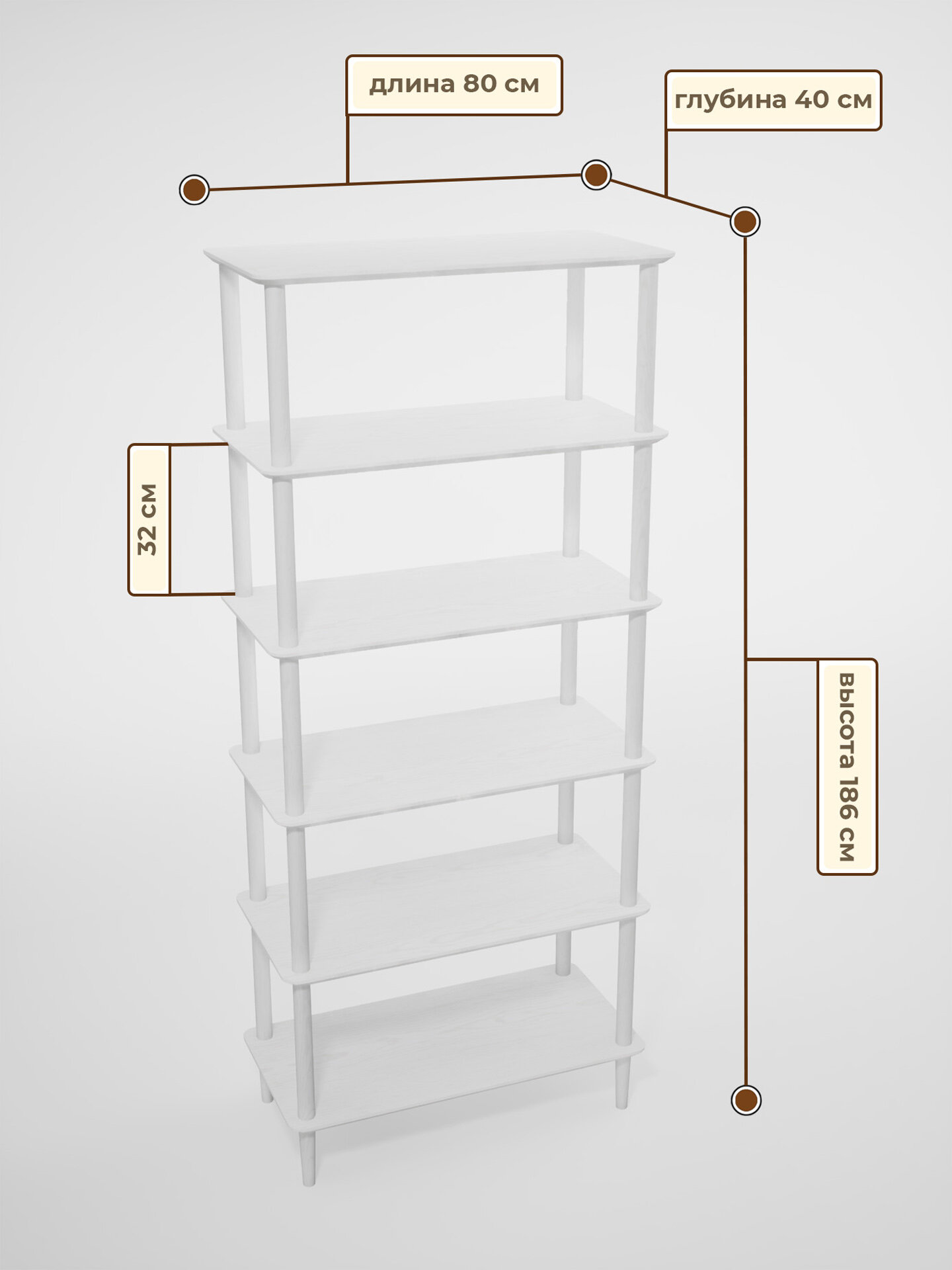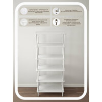 - Эргономика: шесть вместительных полок (расстояние между полками — 32 см), подходит для хранения книг формата А4, альбомов, коробок.