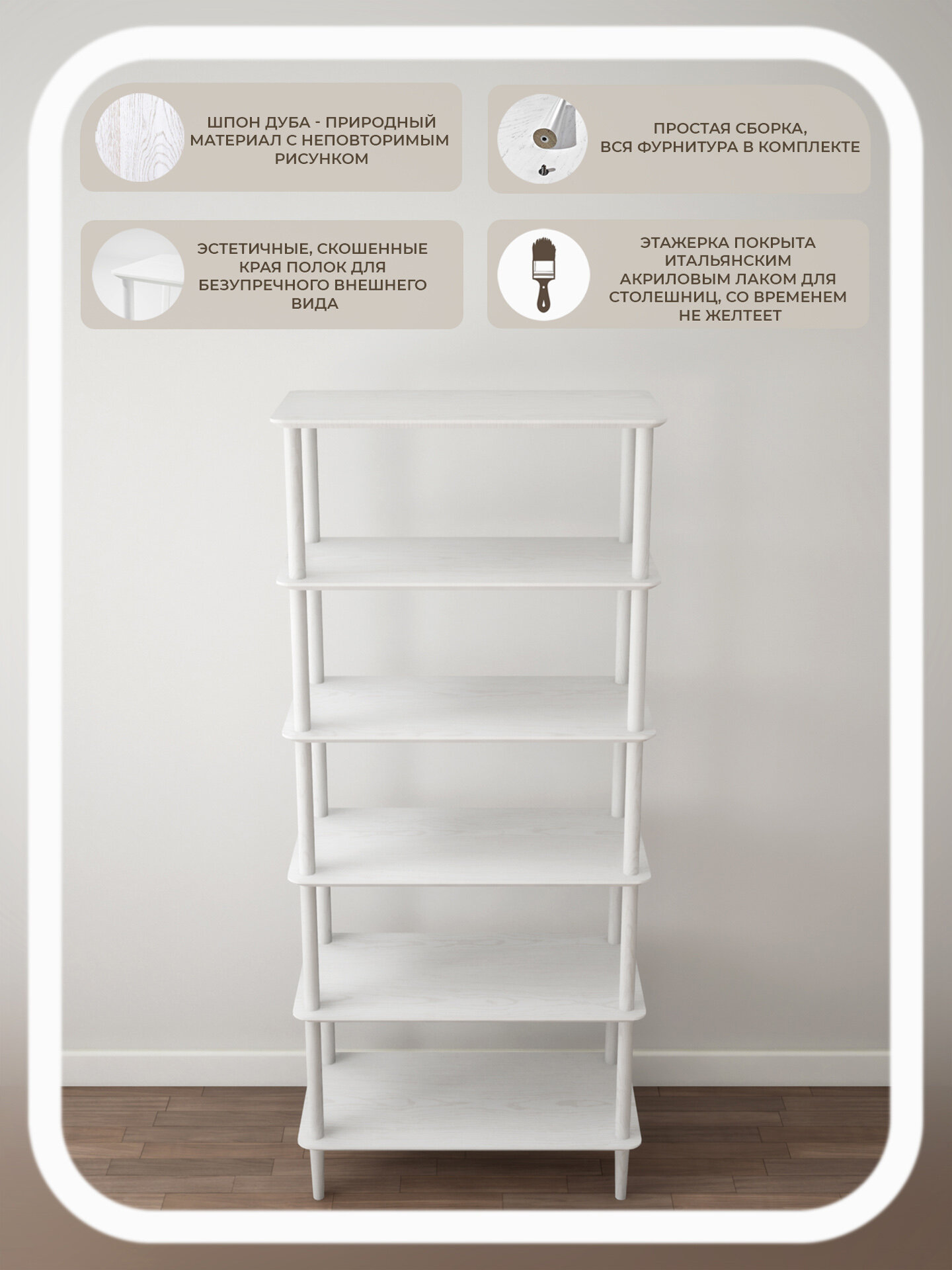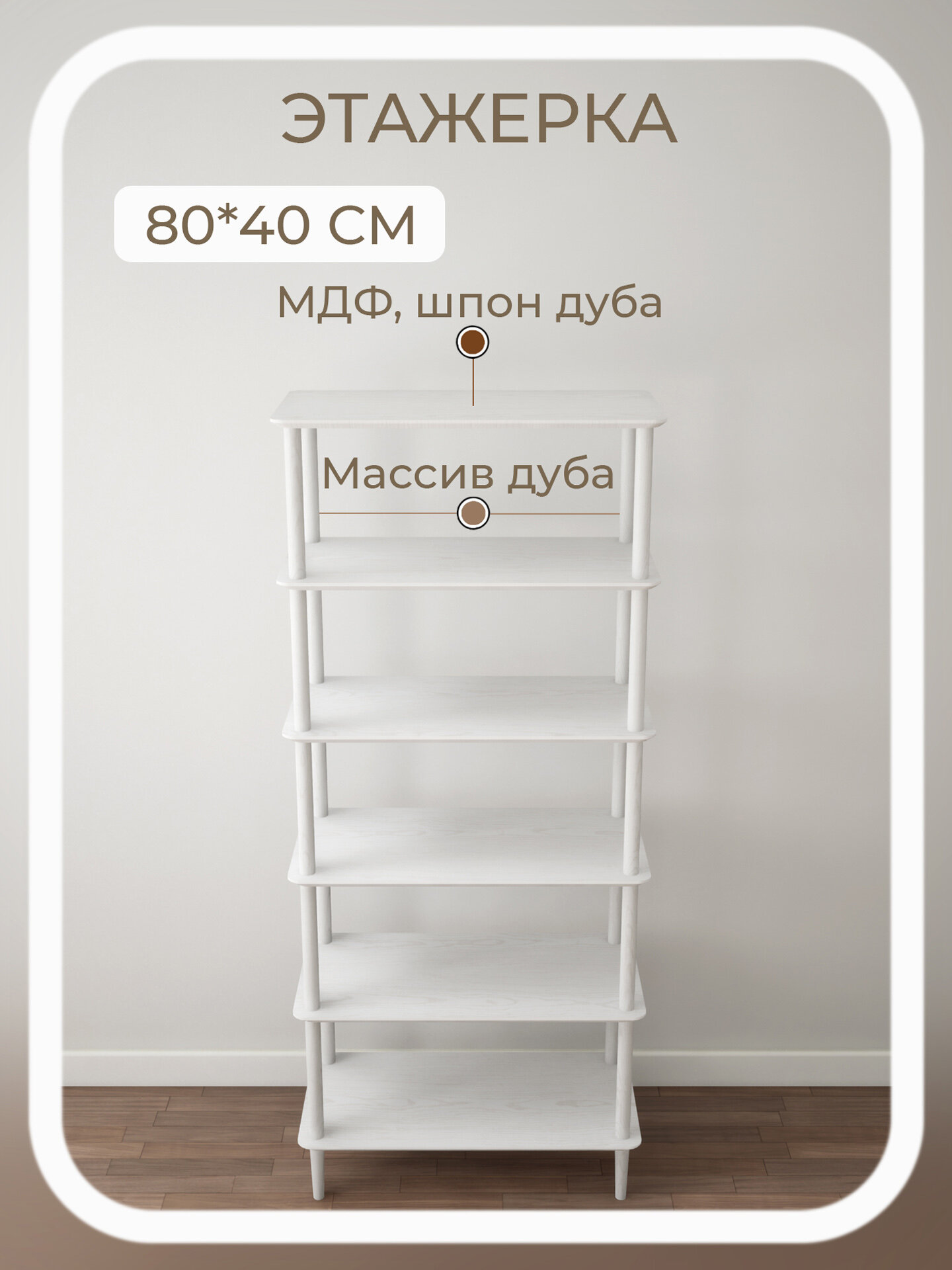 Стеллаж деревянный напольный книжный 6 полок STROGANINI, 80×40×186 см, дуб