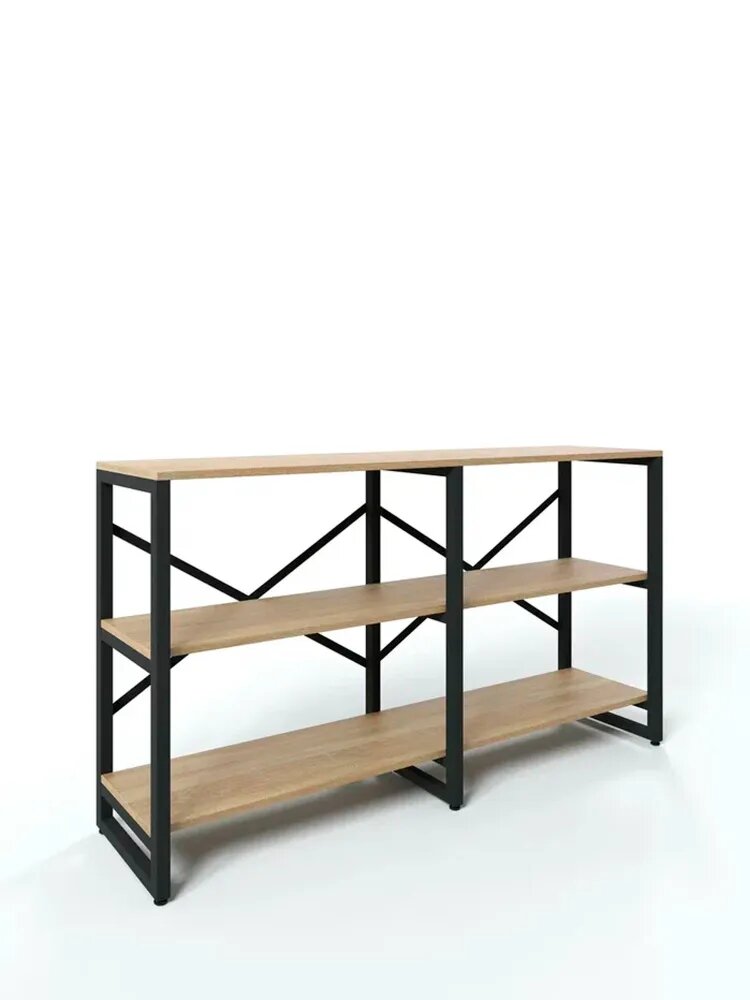 Стеллаж BRUNO DOUBLE 3 полки в стиле лофт (75х134х34см) Дуб Сонома