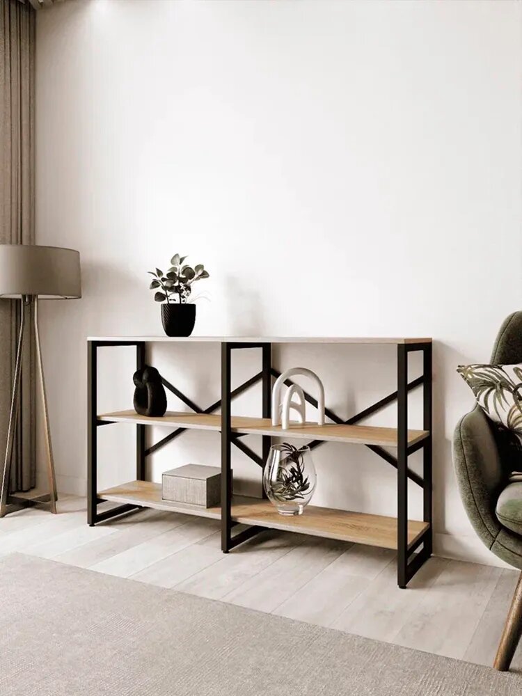 Стеллаж BRUNO DOUBLE 3 полки выполнен в стиле лофт, который прекрасно сочетается с различными стилями интерьера.