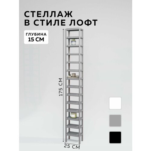 Стеллаж – Этажерка Размер: 15 х 25 x 175 см, 14 полок Изготавливается 65 моделей стеллажей Delta-Loft, серия CUBE 2 (КУБ) Самый маленький стеллаж: Наружные размеры 15х25 см/Внутренние размеры полок 10х20х10 см. Самый большой стеллаж: Наружные размеры 60х115 см/Внутренние размеры полок 55х110х55 см. Высота стеллажей до 2 м/200 см/2000 мм. Количество полок: от 2 до 16 штук, в зависимости от высоты и размеров полок. Увеличение размера по всем 3 (трём) координатам по 5 см (ширина/глубина/высота) Не подобрать по размеру – невозможно! Впишемся – всюду! Мебель, в стиле лофт, сочетается с любой мебелью в интерьере. Стеллаж – этажерка создаст уют в гостиной и спальне прихожей и кухне столовой и детской, сохранит всё то, что есть в нашем доме. Для хранения книг, подберётся стеллаж для книг или напольная книжная полка для изданий любого размера, не переживая за надёжность крепления и не портя стены. Для игрушек и школьных принадлежностей безопасно расположится в детской комнате, благодаря, почти незаметным креплениям к стене. Узкие и небольшие стеллажи подойдут даже для самой маленькой ванной комнаты. Теперь можно выбрать напольную подставку для цветов и растений любых размеров. Невысокие стеллажи можно использовать как журнальный столик, и выбрать любой размер. Какой загородный дом или дача без садовой мебели? Она создаёт уют и украшает пространство. Стеллажи CUBE, не уступают деревянным и превосходят по прочности пластиковые стеллажи этажерки и комоды. Небольшие стеллажи подойдут как подставка под обувь, как для больших, так и для маленьких прихожих и коридоров. Увеличит место для хранения продуктов, кухонной утвари и украсит кухню любого размера. Лучшие в баню для хранения полотенец, халатов веников и других банных принадлежностей - они не боятся сырости. Идеальны как тумба для телевизоров, тумба прикроватная или подставка на туалетный столик, для хранения косметики украшений и разных мелочей, которую возможно подобрать любого размера, для любого места. Стеллажи подойдут для организации хранения в гараже, кладовке, балконе особенно, если габариты уже заданы. Универсальный напольный металлический стеллаж – этажерка нашего производства, впишется в интерьер любого помещения общественного пространства, как мебель для школ, офисная мебель, для гостиниц, архивов, представления на выставках и как торговая мебель или стойка для продаж. Полки и трубы – металлические, покрашены чёрной матовой антикоррозийной порошковой краской. Соединители – специальный особо-прочный пластик ABS/АБС, из которого изготавливается обшивка современных автомобилей. Преимущества стеллажей Delta-Loft, серия CUBE: 1. Любой размер по ширине, глубине и высоте кратно 5 см. 2. Стильный дизайн. 3. Идеальная геометрия. 4. Качественные материалы. 5. Крепление к стене в комплекте. 6. Безопасны для детей и домашних животных. 7. Безопасное для пола основание (подпятники). 8. Регулируемые ножки (для стеллажей высотой более 100 см/1 метра). 9. Лёгкая сборка без использования инструмента (инструкция в комплекте). Сделано в Санкт-Петербурге