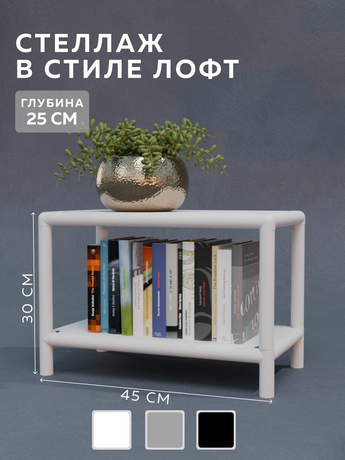 Стеллаж CUBE в стиле лофт металлический, 2 полки, 25х45×30 см, Белый, Delta-Loft: сравнение цен, характеристики, фото, актуальное наличие и цены.