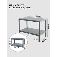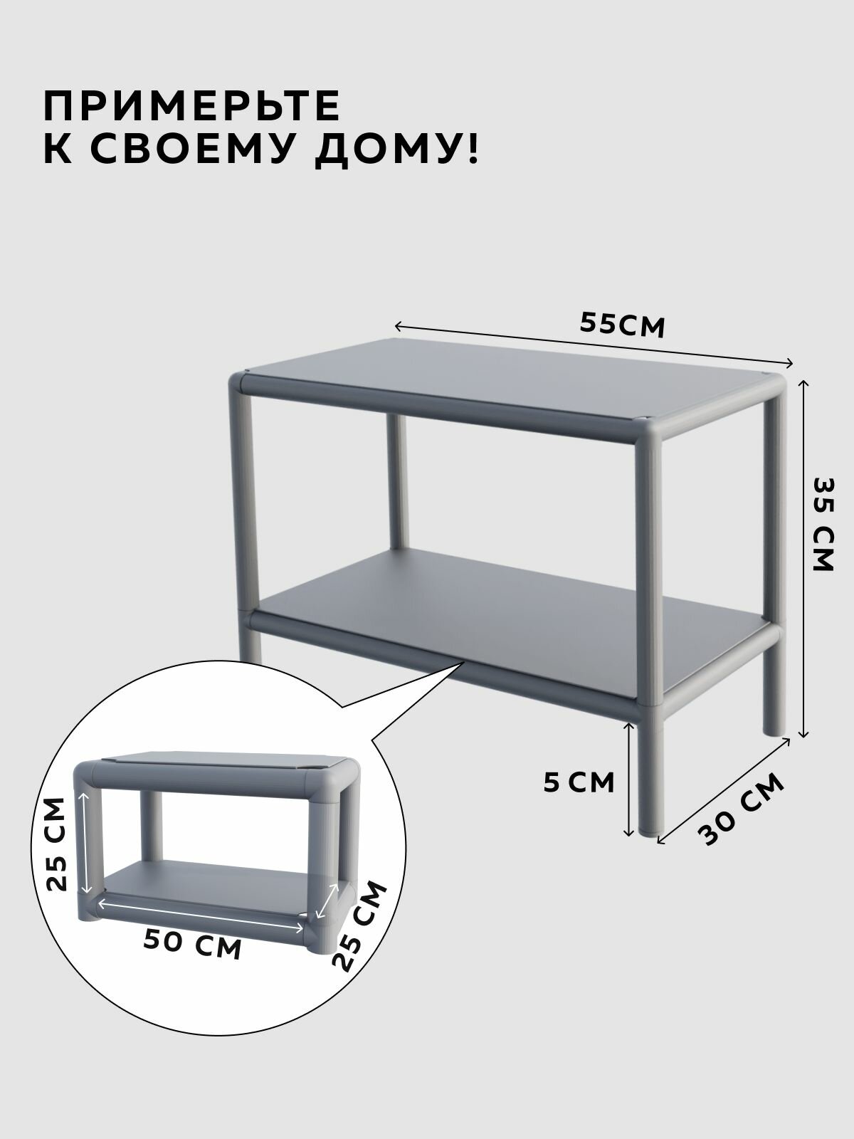 Стеллаж – Этажерка Размер: 30 х 55 x 35 см, 2 полки Изготавливается 65 моделей стеллажей Delta-Loft, серия CUBE 2 (КУБ) Самый маленький стеллаж: Наружные размеры 15х25 см/Внутренние размеры полок 10х20х10 см. Самый большой стеллаж: Наружные размеры 60х115 см/Внутренние размеры полок 55х110х55 см. Высота стеллажей до 2 м/200 см/2000 мм. Количество полок: от 2 до 16 штук, в зависимости от высоты и размеров полок. Увеличение размера по всем 3 (трём) координатам по 5 см (ширина/глубина/высота) Не подобрать по размеру – невозможно! Впишемся – всюду! Мебель, в стиле лофт, сочетается с любой мебелью в интерьере. Стеллаж – этажерка создаст уют в гостиной и спальне прихожей и кухне столовой и детской, сохранит всё то, что есть в нашем доме. Для хранения книг, подберётся стеллаж для книг или напольная книжная полка для изданий любого размера, не переживая за надёжность крепления и не портя стены. Для игрушек и школьных принадлежностей безопасно расположится в детской комнате, благодаря, почти незаметным креплениям к стене. Узкие и небольшие стеллажи подойдут даже для самой маленькой ванной комнаты. Теперь можно выбрать напольную подставку для цветов и растений любых размеров. Невысокие стеллажи можно использовать как журнальный столик, и выбрать любой размер. Какой загородный дом или дача без садовой мебели? Она создаёт уют и украшает пространство. Стеллажи CUBE, не уступают деревянным и превосходят по прочности пластиковые стеллажи этажерки и комоды. Небольшие стеллажи подойдут как подставка под обувь, как для больших, так и для маленьких прихожих и коридоров. Увеличит место для хранения продуктов, кухонной утвари и украсит кухню любого размера. Лучшие в баню для хранения полотенец, халатов веников и других банных принадлежностей - они не боятся сырости. Идеальны как тумба для телевизоров, тумба прикроватная или подставка на туалетный столик, для хранения косметики украшений и разных мелочей, которую возможно подобрать любого размера, для любого места. Стеллажи подойдут для организации хранения в гараже, кладовке, балконе особенно, если габариты уже заданы. Универсальный напольный металлический стеллаж – этажерка нашего производства, впишется в интерьер любого помещения общественного пространства, как мебель для школ, офисная мебель, для гостиниц, архивов, представления на выставках и как торговая мебель или стойка для продаж. Полки и трубы – металлические, покрашены чёрной матовой антикоррозийной порошковой краской. Соединители – специальный особо-прочный пластик ABS/АБС, из которого изготавливается обшивка современных автомобилей. Преимущества стеллажей Delta-Loft, серия CUBE: 1. Любой размер по ширине, глубине и высоте кратно 5 см. 2. Стильный дизайн. 3. Идеальная геометрия. 4. Качественные материалы. 5. Крепление к стене в комплекте. 6. Безопасны для детей и домашних животных. 7. Безопасное для пола основание (подпятники). 8. Регулируемые ножки (для стеллажей высотой более 100 см/1 метра). 9. Лёгкая сборка без использования инструмента (инструкция в комплекте). Сделано в Санкт-Петербурге