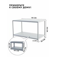 Стеллаж – Этажерка Размер: 45 х 85 x 50 см, 2 полки Изготавливается 65 моделей стеллажей Delta-Loft, серия CUBE 2 (КУБ) Самый маленький стеллаж: Наружные размеры 15х25 см/Внутренние размеры полок 10х20х10 см. Самый большой стеллаж: Наружные размеры 60х115 см/Внутренние размеры полок 55х110х55 см. Высота стеллажей до 2 м/200 см/2000 мм. Количество полок: от 2 до 16 штук, в зависимости от высоты и размеров полок. Увеличение размера по всем 3 (трём) координатам по 5 см (ширина/глубина/высота) Не подобрать по размеру – невозможно! Впишемся – всюду! Мебель, в стиле лофт, сочетается с любой мебелью в интерьере. Стеллаж – этажерка создаст уют в гостиной и спальне прихожей и кухне столовой и детской, сохранит всё то, что есть в нашем доме. Для хранения книг, подберётся стеллаж для книг или напольная книжная полка для изданий любого размера, не переживая за надёжность крепления и не портя стены. Для игрушек и школьных принадлежностей безопасно расположится в детской комнате, благодаря, почти незаметным креплениям к стене. Узкие и небольшие стеллажи подойдут даже для самой маленькой ванной комнаты. Теперь можно выбрать напольную подставку для цветов и растений любых размеров. Невысокие стеллажи можно использовать как журнальный столик, и выбрать любой размер. Какой загородный дом или дача без садовой мебели? Она создаёт уют и украшает пространство. Стеллажи CUBE, не уступают деревянным и превосходят по прочности пластиковые стеллажи этажерки и комоды. Небольшие стеллажи подойдут как подставка под обувь, как для больших, так и для маленьких прихожих и коридоров. Увеличит место для хранения продуктов, кухонной утвари и украсит кухню любого размера. Лучшие в баню для хранения полотенец, халатов веников и других банных принадлежностей - они не боятся сырости. Идеальны как тумба для телевизоров, тумба прикроватная или подставка на туалетный столик, для хранения косметики украшений и разных мелочей, которую возможно подобрать любого размера, для любого места. Стеллажи подойдут для организации хранения в гараже, кладовке, балконе особенно, если габариты уже заданы. Универсальный напольный металлический стеллаж – этажерка нашего производства, впишется в интерьер любого помещения общественного пространства, как мебель для школ, офисная мебель, для гостиниц, архивов, представления на выставках и как торговая мебель или стойка для продаж. Полки и трубы – металлические, покрашены чёрной матовой антикоррозийной порошковой краской. Соединители – специальный особо-прочный пластик ABS/АБС, из которого изготавливается обшивка современных автомобилей. Преимущества стеллажей Delta-Loft, серия CUBE: 1. Любой размер по ширине, глубине и высоте кратно 5 см. 2. Стильный дизайн. 3. Идеальная геометрия. 4. Качественные материалы. 5. Крепление к стене в комплекте. 6. Безопасны для детей и домашних животных. 7. Безопасное для пола основание (подпятники). 8. Регулируемые ножки (для стеллажей высотой более 100 см/1 метра). 9. Лёгкая сборка без использования инструмента (инструкция в комплекте). Сделано в Санкт-Петербурге
