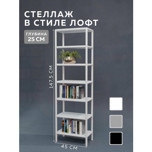 Стеллаж – Этажерка Размер: 25 х 45 x 147,5 см, 2 полки Изготавливается 65 моделей стеллажей Delta-Loft, серия CUBE 2 (КУБ) Самый маленький стеллаж: Наружные размеры 15х25 см/Внутренние размеры полок 10х20х10 см. Самый большой стеллаж: Наружные размеры 60х115 см/Внутренние размеры полок 55х110х55 см. Высота стеллажей до 2 м/200 см/2000 мм. Количество полок: от 2 до 16 штук, в зависимости от высоты и размеров полок. Увеличение размера по всем 3 (трём) координатам по 5 см (ширина/глубина/высота) Не подобрать по размеру – невозможно! Впишемся – всюду! Мебель, в стиле лофт, сочетается с любой мебелью в интерьере. Стеллаж – этажерка создаст уют в гостиной и спальне прихожей и кухне столовой и детской, сохранит всё то, что есть в нашем доме. Для хранения книг, подберётся стеллаж для книг или напольная книжная полка для изданий любого размера, не переживая за надёжность крепления и не портя стены. Для игрушек и школьных принадлежностей безопасно расположится в детской комнате, благодаря, почти незаметным креплениям к стене. Узкие и небольшие стеллажи подойдут даже для самой маленькой ванной комнаты. Теперь можно выбрать напольную подставку для цветов и растений любых размеров. Невысокие стеллажи можно использовать как журнальный столик, и выбрать любой размер. Какой загородный дом или дача без садовой мебели? Она создаёт уют и украшает пространство. Стеллажи CUBE, не уступают деревянным и превосходят по прочности пластиковые стеллажи этажерки и комоды. Небольшие стеллажи подойдут как подставка под обувь, как для больших, так и для маленьких прихожих и коридоров. Увеличит место для хранения продуктов, кухонной утвари и украсит кухню любого размера. Лучшие в баню для хранения полотенец, халатов веников и других банных принадлежностей - они не боятся сырости. Идеальны как тумба для телевизоров, тумба прикроватная или подставка на туалетный столик, для хранения косметики украшений и разных мелочей, которую возможно подобрать любого размера, для любого места. Стеллажи подойдут для организации хранения в гараже, кладовке, балконе особенно, если габариты уже заданы. Универсальный напольный металлический стеллаж – этажерка нашего производства, впишется в интерьер любого помещения общественного пространства, как мебель для школ, офисная мебель, для гостиниц, архивов, представления на выставках и как торговая мебель или стойка для продаж. Полки и трубы – металлические, покрашены чёрной матовой антикоррозийной порошковой краской. Соединители – специальный особо-прочный пластик ABS/АБС, из которого изготавливается обшивка современных автомобилей. Преимущества стеллажей Delta-Loft, серия CUBE: 1. Любой размер по ширине, глубине и высоте кратно 5 см. 2. Стильный дизайн. 3. Идеальная геометрия. 4. Качественные материалы. 5. Крепление к стене в комплекте. 6. Безопасны для детей и домашних животных. 7. Безопасное для пола основание (подпятники). 8. Регулируемые ножки (для стеллажей высотой более 100 см/1 метра). 9. Лёгкая сборка без использования инструмента (инструкция в комплекте). Сделано в Санкт-Петербурге