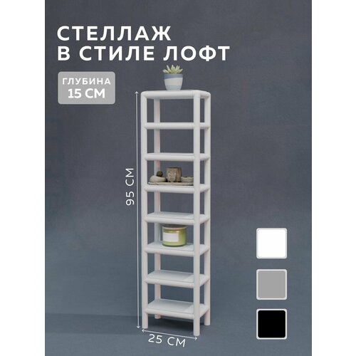Стеллаж – Этажерка Размер: 15 х 25 x 95 см, 8 полок Изготавливается 65 моделей стеллажей Delta-Loft, серия CUBE 2 (КУБ) Самый маленький стеллаж: Наружные размеры 15х25 см/Внутренние размеры полок 10х20х10 см. Самый большой стеллаж: Наружные размеры 60х115 см/Внутренние размеры полок 55х110х55 см. Высота стеллажей до 2 м/200 см/2000 мм. Количество полок: от 2 до 16 штук, в зависимости от высоты и размеров полок. Увеличение размера по всем 3 (трём) координатам по 5 см (ширина/глубина/высота) Не подобрать по размеру – невозможно! Впишемся – всюду! Мебель, в стиле лофт, сочетается с любой мебелью в интерьере. Стеллаж – этажерка создаст уют в гостиной и спальне прихожей и кухне столовой и детской, сохранит всё то, что есть в нашем доме. Для хранения книг, подберётся стеллаж для книг или напольная книжная полка для изданий любого размера, не переживая за надёжность крепления и не портя стены. Для игрушек и школьных принадлежностей безопасно расположится в детской комнате, благодаря, почти незаметным креплениям к стене. Узкие и небольшие стеллажи подойдут даже для самой маленькой ванной комнаты. Теперь можно выбрать напольную подставку для цветов и растений любых размеров. Невысокие стеллажи можно использовать как журнальный столик, и выбрать любой размер. Какой загородный дом или дача без садовой мебели? Она создаёт уют и украшает пространство. Стеллажи CUBE, не уступают деревянным и превосходят по прочности пластиковые стеллажи этажерки и комоды. Небольшие стеллажи подойдут как подставка под обувь, как для больших, так и для маленьких прихожих и коридоров. Увеличит место для хранения продуктов, кухонной утвари и украсит кухню любого размера. Лучшие в баню для хранения полотенец, халатов веников и других банных принадлежностей - они не боятся сырости. Идеальны как тумба для телевизоров, тумба прикроватная или подставка на туалетный столик, для хранения косметики украшений и разных мелочей, которую возможно подобрать любого размера, для любого места. Стеллажи подойдут для организации хранения в гараже, кладовке, балконе особенно, если габариты уже заданы. Универсальный напольный металлический стеллаж – этажерка нашего производства, впишется в интерьер любого помещения общественного пространства, как мебель для школ, офисная мебель, для гостиниц, архивов, представления на выставках и как торговая мебель или стойка для продаж. Полки и трубы – металлические, покрашены чёрной матовой антикоррозийной порошковой краской. Соединители – специальный особо-прочный пластик ABS/АБС, из которого изготавливается обшивка современных автомобилей. Преимущества стеллажей Delta-Loft, серия CUBE: 1. Любой размер по ширине, глубине и высоте кратно 5 см. 2. Стильный дизайн. 3. Идеальная геометрия. 4. Качественные материалы. 5. Крепление к стене в комплекте. 6. Безопасны для детей и домашних животных. 7. Безопасное для пола основание (подпятники). 8. Регулируемые ножки (для стеллажей высотой более 100 см/1 метра). 9. Лёгкая сборка без использования инструмента (инструкция в комплекте). Сделано в Санкт-Петербурге