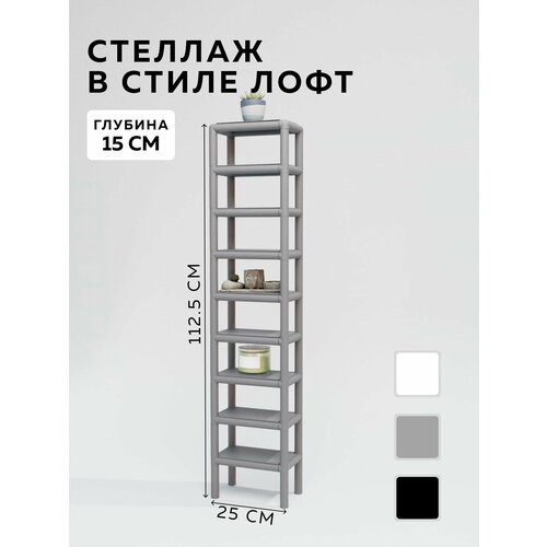 Стеллаж CUBE в стиле лофт металлический, 9 полок, 15х25×112,5 см, Серый, Delta-Loft: сравнение цен, характеристики, фото, актуальное наличие и цены.