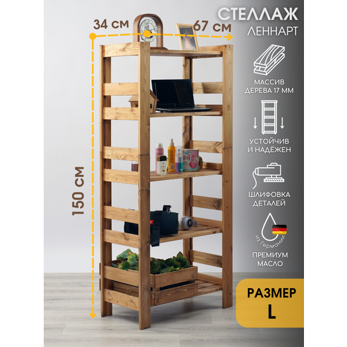 Стеллаж деревянный 150х67х34 см, отшлифован, покрыт защитным премиум маслом, 5 полок, нагрузка 250 кг: сравнение цен, характеристики, фото, актуальное наличие и цены.