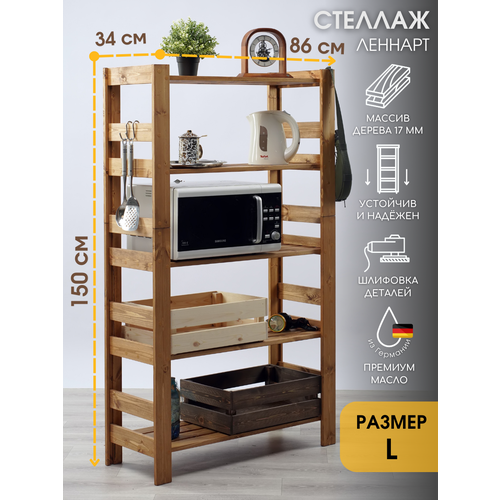Стеллаж деревянный 150х86х34 см, отшлифован, покрыт защитным премиум маслом, 5 полок, нагрузка 250 кг: сравнение цен, характеристики, фото, актуальное наличие и цены.