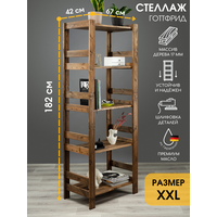 Стеллаж деревянный 182х67х42 см, отшлифован, покрыт защитным премиум маслом, 5 полок, нагрузка 250 кг: сравнение цен, характеристики, фото, актуальное наличие и цены.