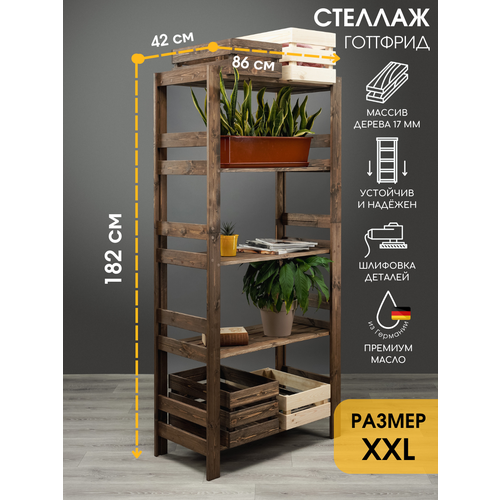 Стеллаж деревянный 182х86х42 см, отшлифован, покрыт защитным премиум маслом, 5 полок, нагрузка 250 кг: сравнение цен, характеристики, фото, актуальное наличие и цены.